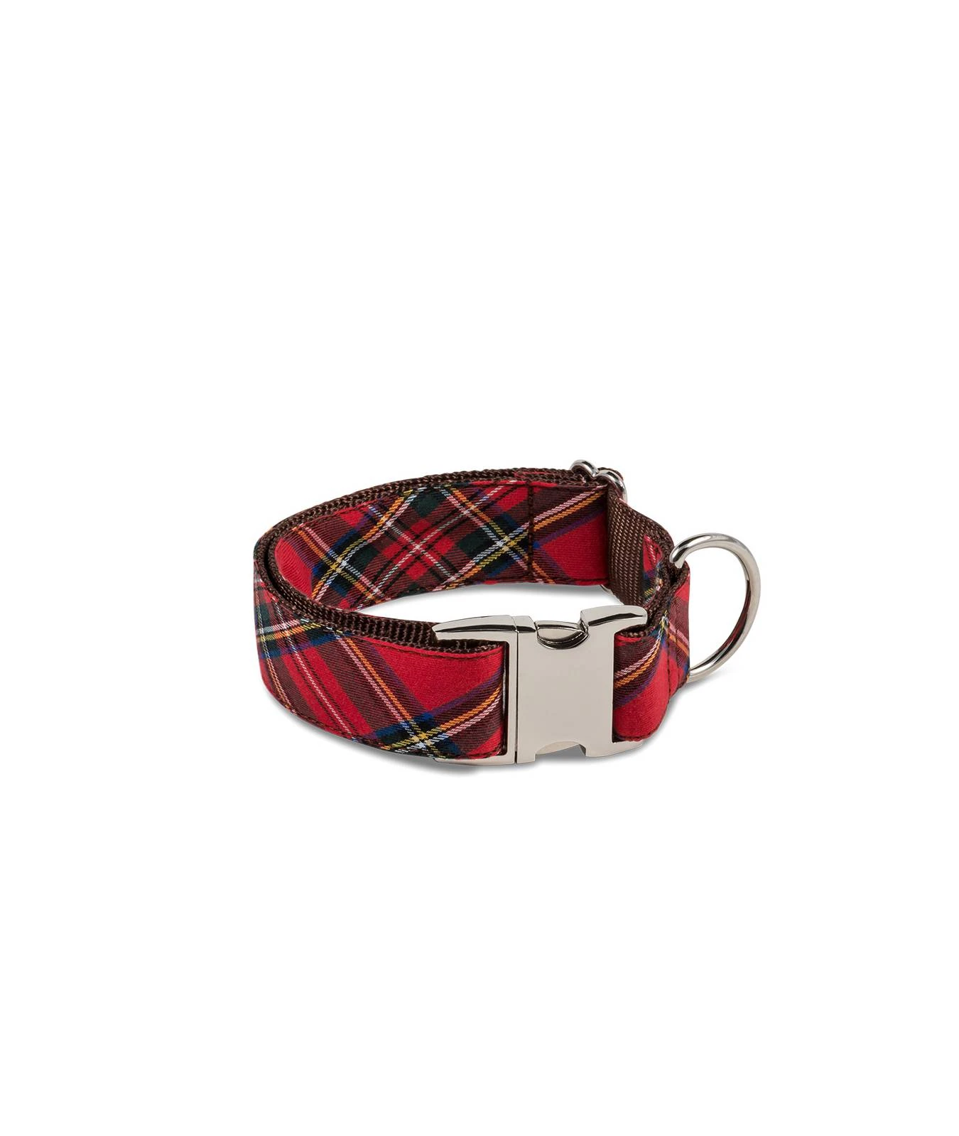 Le collier Tremp pour chien est fabriqué à partir de nylon marron de haute qualité avec un tissu écossais rouge 100% classique.