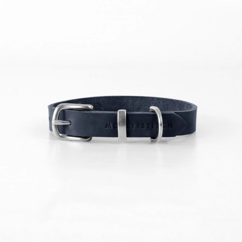 Pour une combinaison parfaite, ce collier en cuir est à assortir à la laisse de la même gamme ou dépareillé avec une laisse pour chien en corde marine Molly & Stitch.