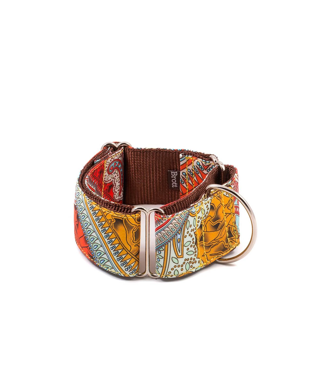 Le collier Sacaleta pour chien est fabriqué à partir de nylon marron de haute qualité avec un tissu à la fois élégant et audacieux. Les formes abstraites sont incroyables et leurs couleurs respirent l’été pur.