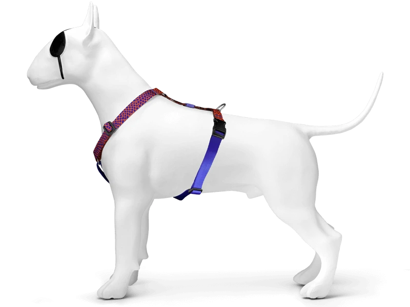 Ce harnais pour chien est fait de le satin de polyester innovant INTENSE™ : doux, résistant, lavable en machine à 40° et issu de bouteilles PET, 100% recyclé et recyclable.