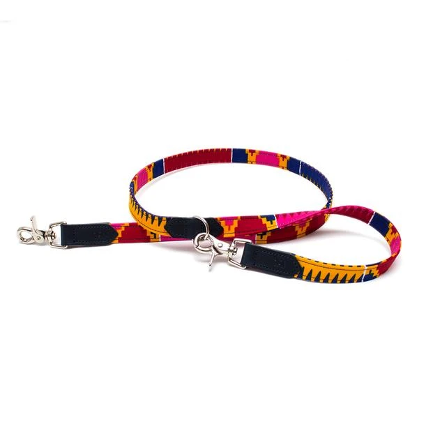 Ces laisses Dakar pour chien uniques sont faites à la main dans un beau tissu chatoyant du Sénégal.