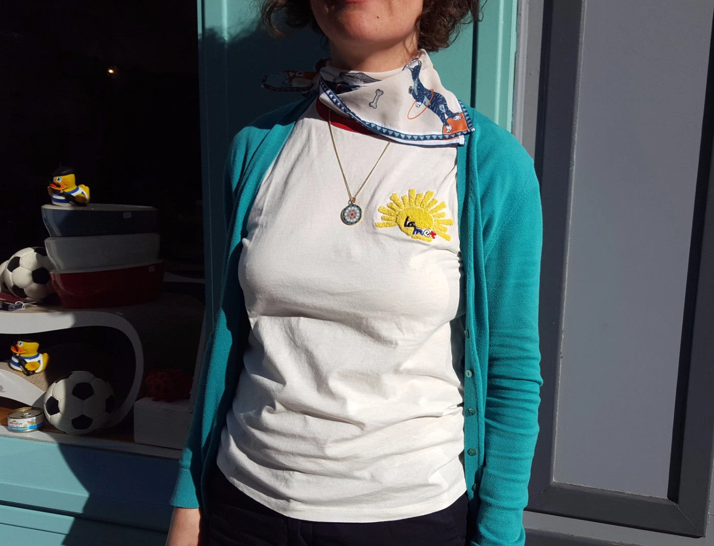 Cet accessoire indispensable pour être chic, avec son motif poétique et décalé, qui rappelle une déambulation à travers la ville de Nantes : cet immense terrain de jeu ! agrémenté de plusieurs symboles emblématiques de la ville de Nantes comme par exemple les anneaux de Buren.