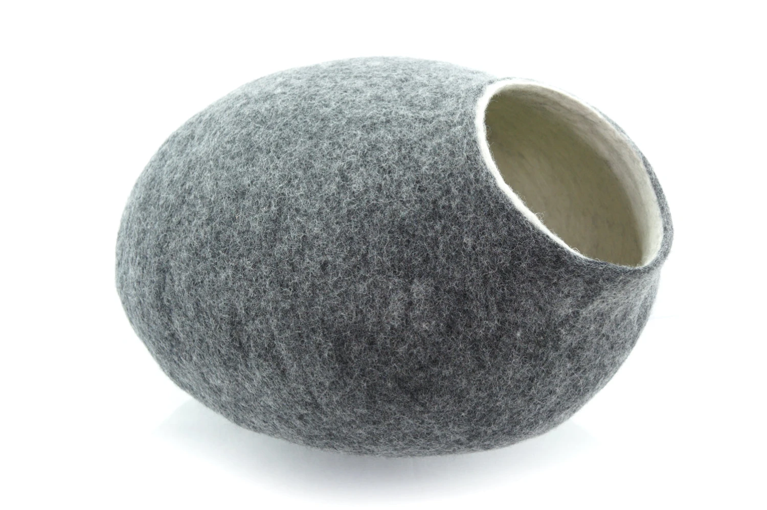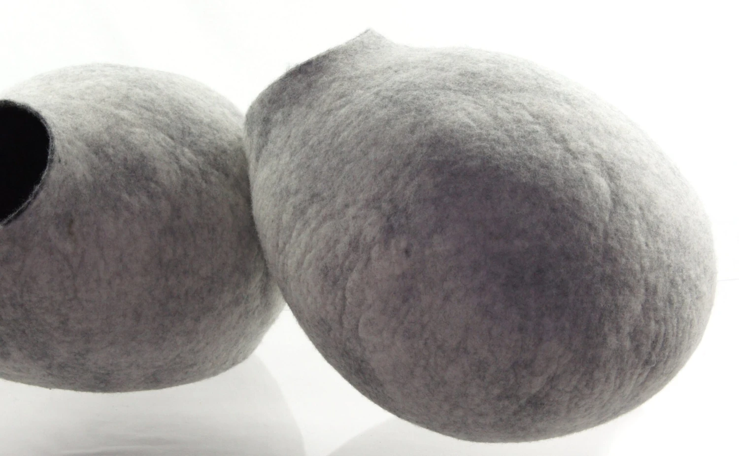 Maison pour chat confectionnée en laine feutrée. Chaque pièce est fabriquée à la main et est donc unique, comme votre chat.