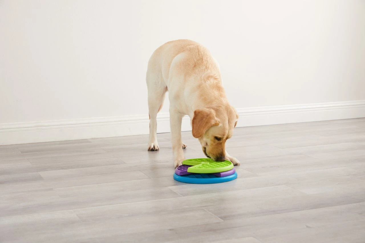 Conçu par Nina Ottosson, marque de référence en matière de jeux d’intelligence, Lickin’ Layers est un puzzle pour chien de niveau 2.